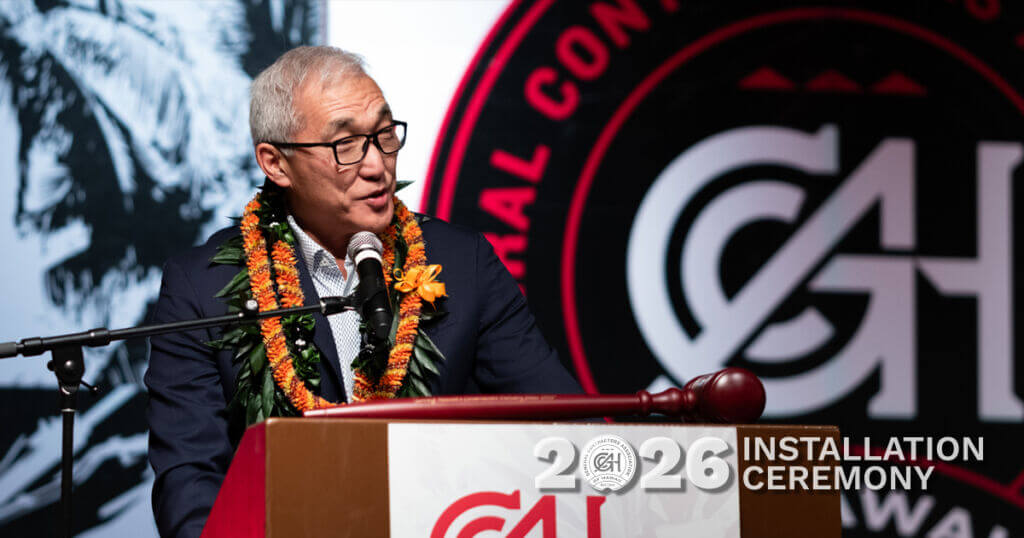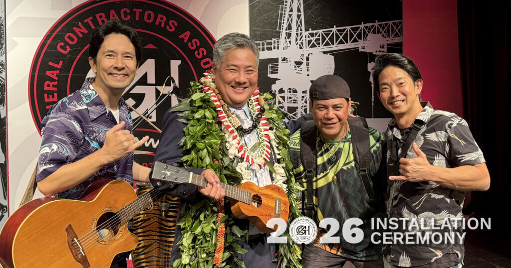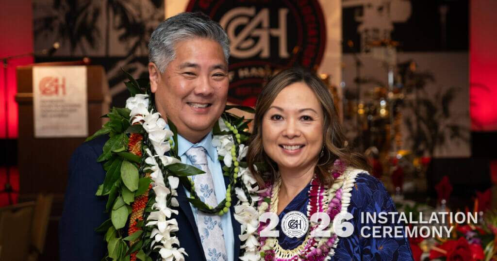 Along with the new slate of GCA Officers and Board members being introduced, the president title officially changed hands from Russell Inouye of Koga Engineering & Construction, Inc. to Michael Inouye of Ralph S. Inouye, Inc.
